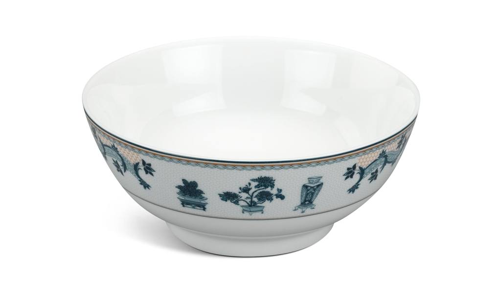Bộ sản phẩm Tứ quý quy tụ 4 loài cây đại diện cho 4 mùa: Mai (mùa xuân), Trúc (mùa hạ), Cúc (mùa Thu), Tùng (mùa Đông), mang đến cho chủ sở hữu sự phú quý, sung túc và may mắn. Trên mỗi sản phẩm, 4 loài cây được khắc họa xen kẽ một cách khéo léo tạo nên một bộ tứ vừa vững chãi vừa mảnh mai. Đồng thời, sắc xanh hòa cùng men sứ trắng ngà tạo nên bức tranh thiên nhiên nhiều sắc màu với bao lời chúc tốt lành.