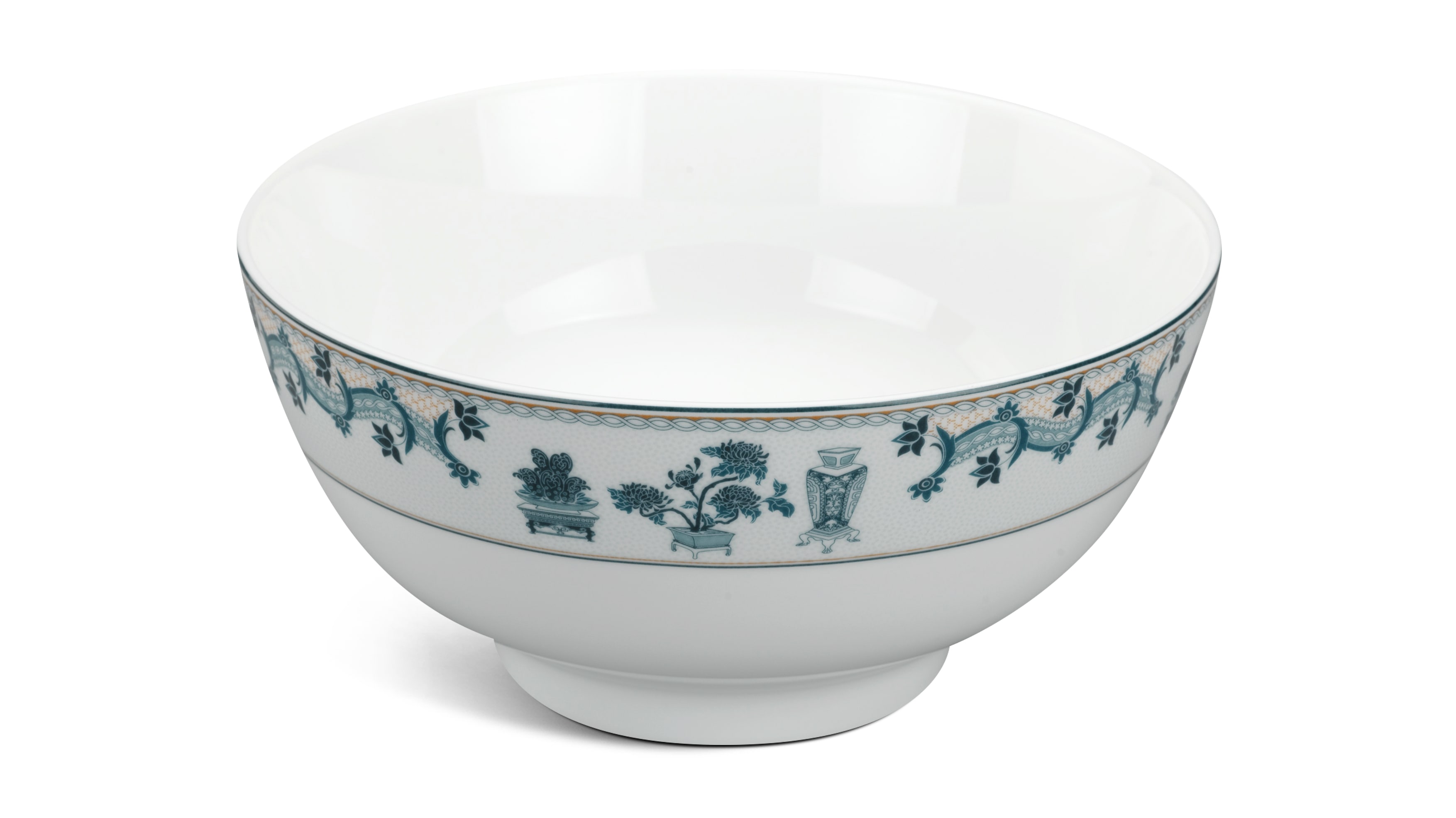 Bộ sản phẩm Tứ quý quy tụ 4 loài cây đại diện cho 4 mùa: Mai (mùa xuân), Trúc (mùa hạ), Cúc (mùa Thu), Tùng (mùa Đông), mang đến cho chủ sở hữu sự phú quý, sung túc và may mắn. Trên mỗi sản phẩm, 4 loài cây được khắc họa xen kẽ một cách khéo léo tạo nên một bộ tứ vừa vững chãi vừa mảnh mai. Đồng thời, sắc xanh hòa cùng men sứ trắng ngà tạo nên bức tranh thiên nhiên nhiều sắc màu với bao lời chúc tốt lành.